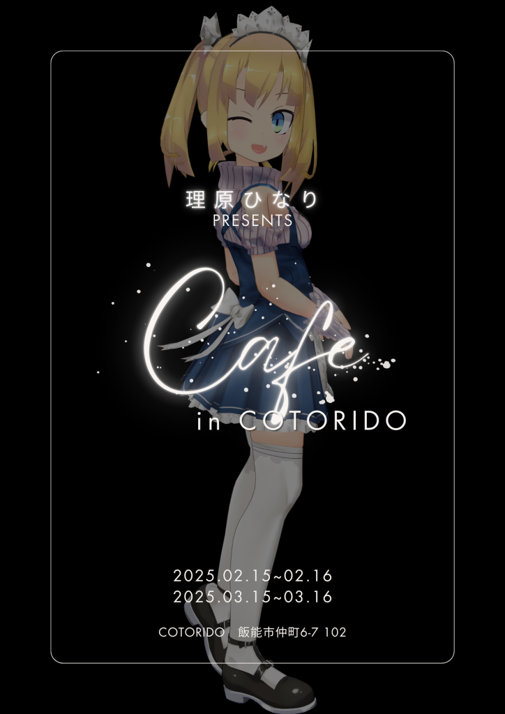 女子大生メイドVtuberとして注目を集める理原ひなり様が、心を込めた1to1の丁寧な接客で皆様をおもてなしいたします。この特別なカフェでは、彼女との会話を楽しみながら、忘れられないひとときをお過ごしいただけます。