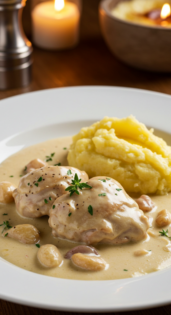 3月のディナーは、春にぴったりのチキンクリーム煮をご用意しました。柔らかく煮込んだ鶏肉にクリーミーなソースが絡む、どこか懐かしくも上品な味わいが広がります。(写真はイメージです)